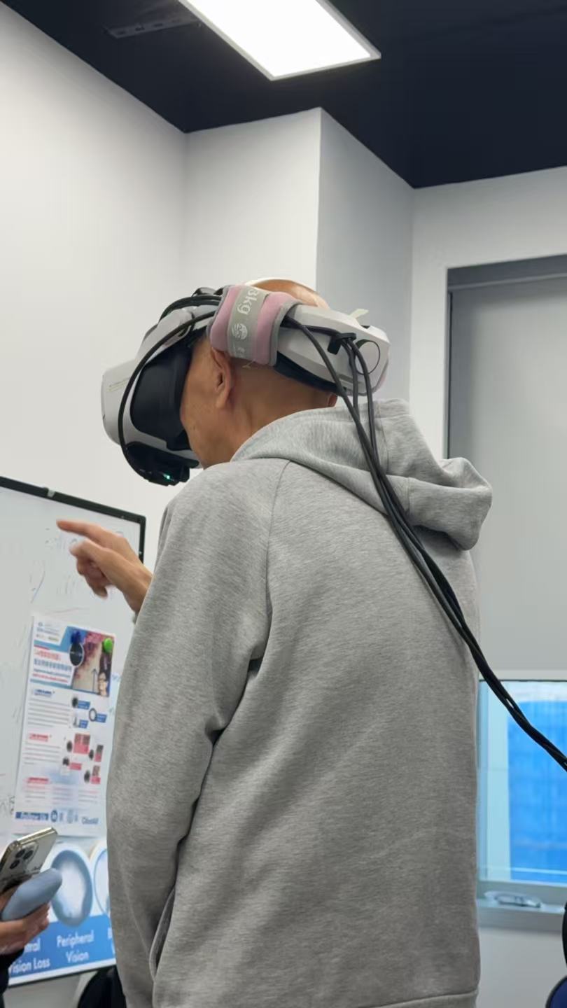 The following images show the experimental scenarios of this research on VR‑based low vision rehabilitation (for reference only).This study utilizes VR technology to conduct visual compensation experiments on individuals with low vision, such as those with central visual field defects, aiming to explore more effective solutions for improving visual function.
